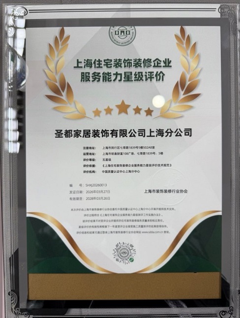 此次荣膺五星级企业称号,是上海圣都整拆成长过程中的主要里程碑,更是行业付与的全新。将来,上海圣都整拆将以此次五星评定为新起点,持续苦守质量初心取办事本意天良,不竭升级施工工艺、优化办事系统、强化品控办理,一直以高尺度要求本身,持续为上海业从供给省心、安心、的一坐式整拆办事,帮力上海室第粉饰行业高质量成长,为更多家庭建制温暖、舒服、高质量的抱负居所。